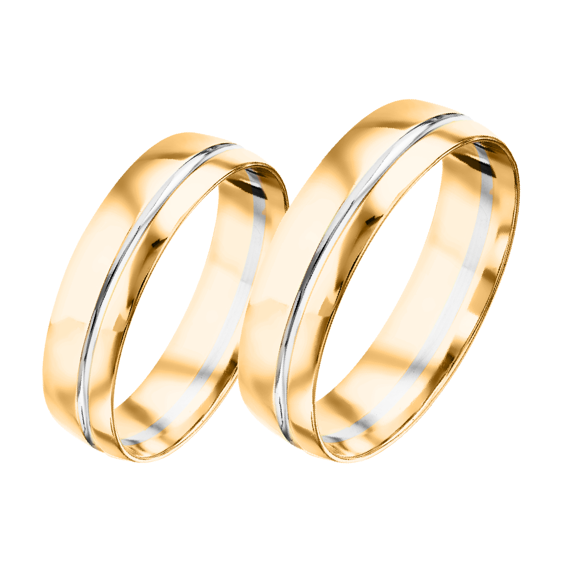 Trauringe aus Gelb- und Weißgold 585, mit glänzend polierter Oberfläche, Breite ≈ 4 mm.