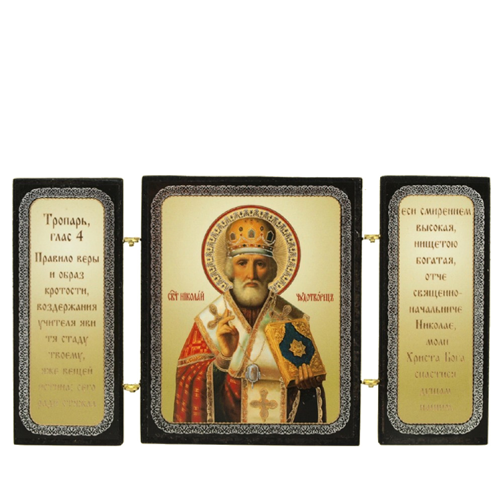 Triptychon-Ikone "Nikolaj Tschudotworez",aus Holz, Doppelprägung, 7x13 cm