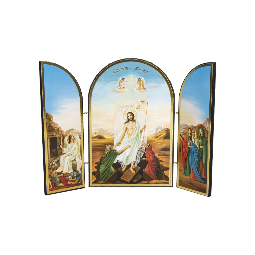 Triptychon-Ikone "Woskresenie Hristowo", aus Holz, Doppelprägung, 18x24 cm