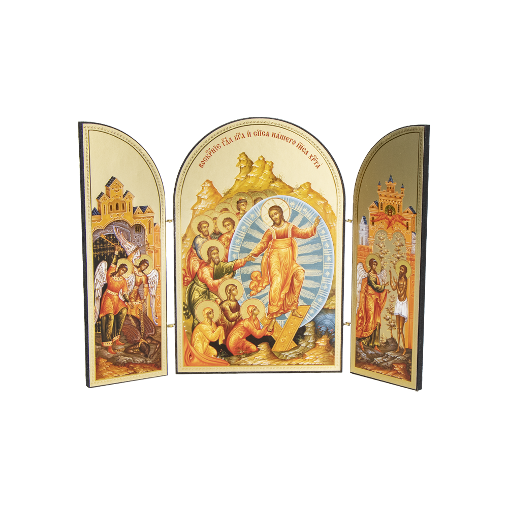 Triptychon-Ikone "Woskresenie Hristowo", aus Holz, Doppelprägung,18x24 cm