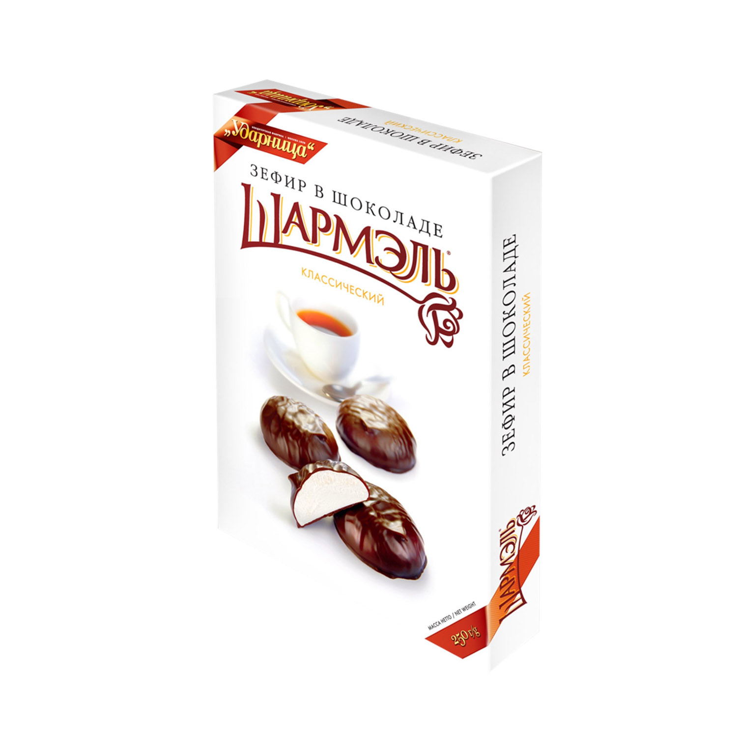 Das Schaumgebäck CHARMEL Classic ist eine exquisite Leckerei, umhüllt von echter Zartbitterschokolade. Er wird nach einem traditionellen Rezept hergestellt, das vor über einem halben Jahrhundert in der UDARNITSA-Süßwarenfabrik in Moskau entwickelt wurde.Der Charmel Klassik Marshmallow in Schokolade vereint die zarte Leichtigkeit von traditionellem Sefir mit dem vollmundigen Geschmack edler Schokolade. Die Basis bildet natürliches Apfelpüree in Kombination mit Agar-Agar aus Meeresalgen, wodurch die feine, luftige Konsistenz entsteht.