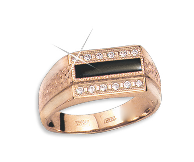 Ausgezeichneter 585 Rotgold Herrenring mit Onyx und Zirkonia