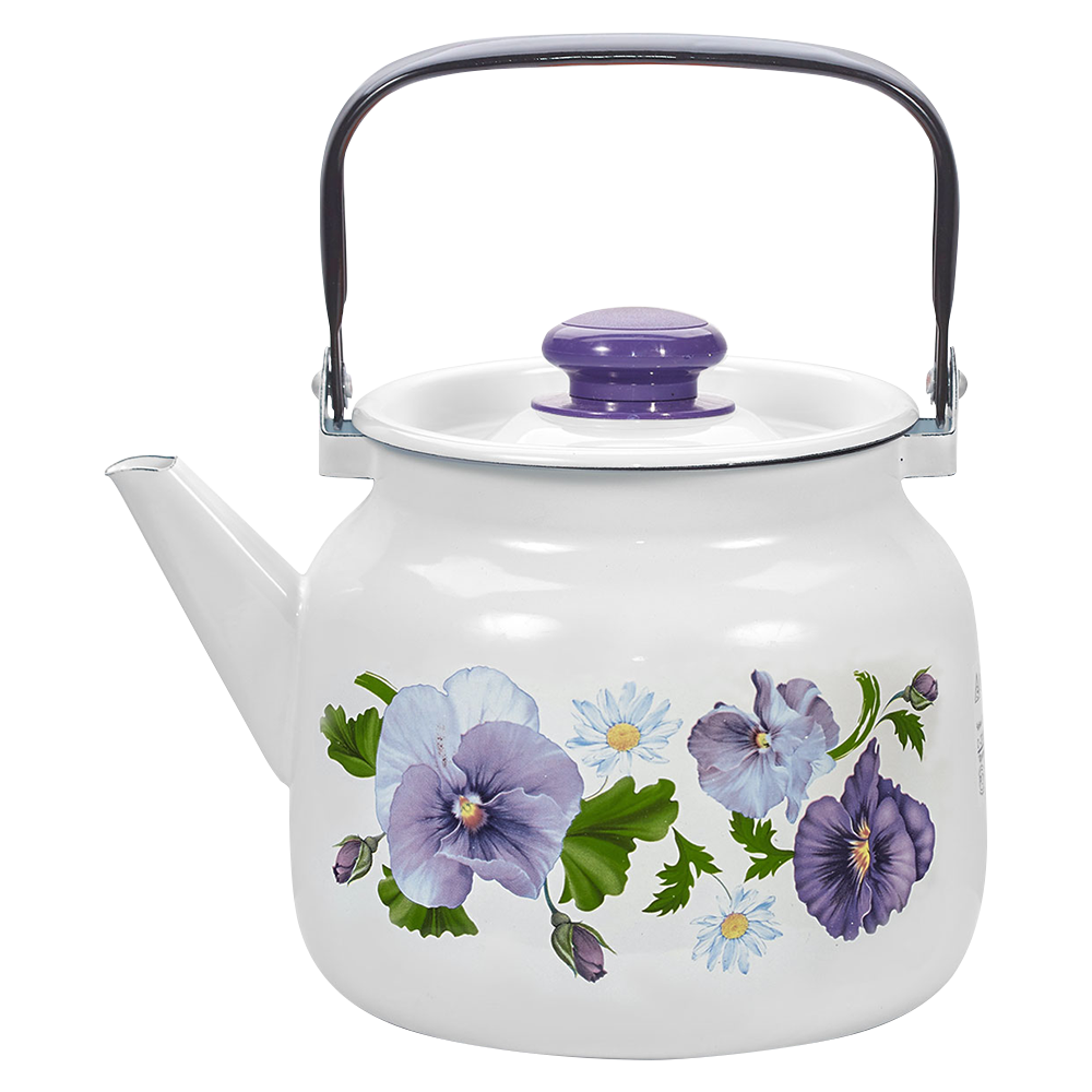 Wasserkessel mit Deckel "Stiefmütterchen" emailliert 3,5 L