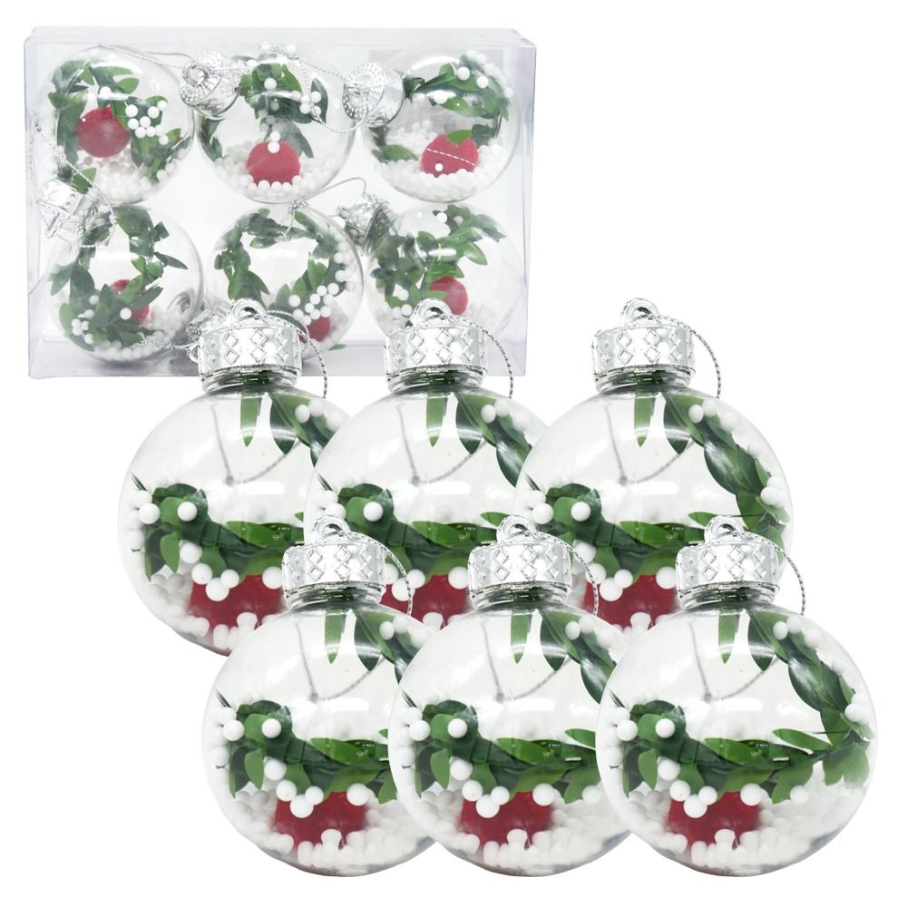 Die Weihnachtskugeln sind ein stilvolles und leichtes Ornament für alle, die festlichen Minimalismus lieben.Im Set enthalten sind 6 Kunststoffkugeln mit einem Durchmesser von 6 cm: teilweise transparent mit Füllung, teilweise weiß.