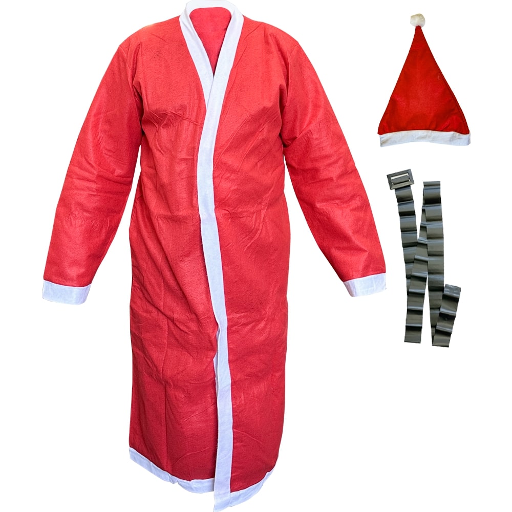 Weihnachtsmann Mantel + Gürtel + Mütze Set, 130x65 cm