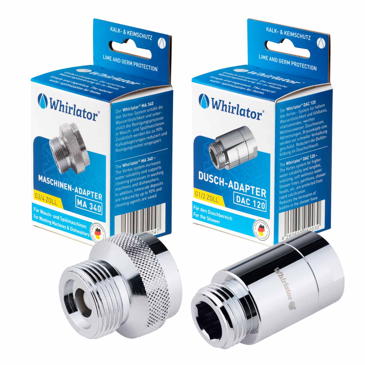 Whirlator® ist die perfekte, moderne und nachhaltige Alternative und lebendige Technologie der Wasseraufbereitung: Wassermoleküle werden durch spezielle Fluss- und Wirbelmuster in Kombination mit Frequenzen neu geordnet - Das Wasser wird weicher und bildet weniger Kalkablagerungen!- DIE NATÜRLICHE WASSERAUFBEREITUNG - Nutze Whirlator für nachhaltige Wasseraufbereitung ohne Salz, Chemie oder Strom. Reduziert Kalk und erhöht Bioverfügbarkeit