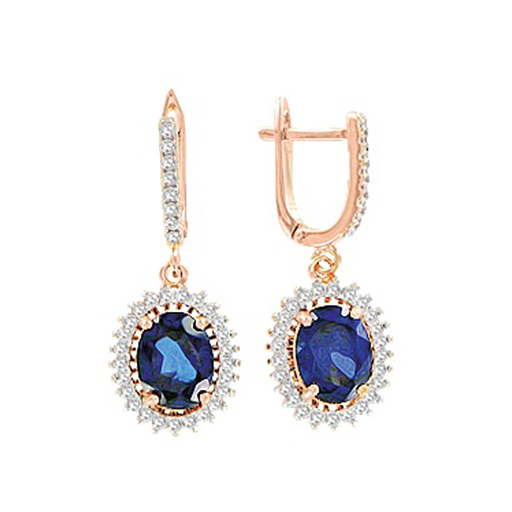 Ohrhänger aus 585 Rotgold mit Saphir und Zirkonia