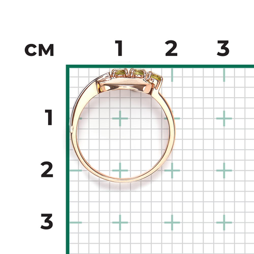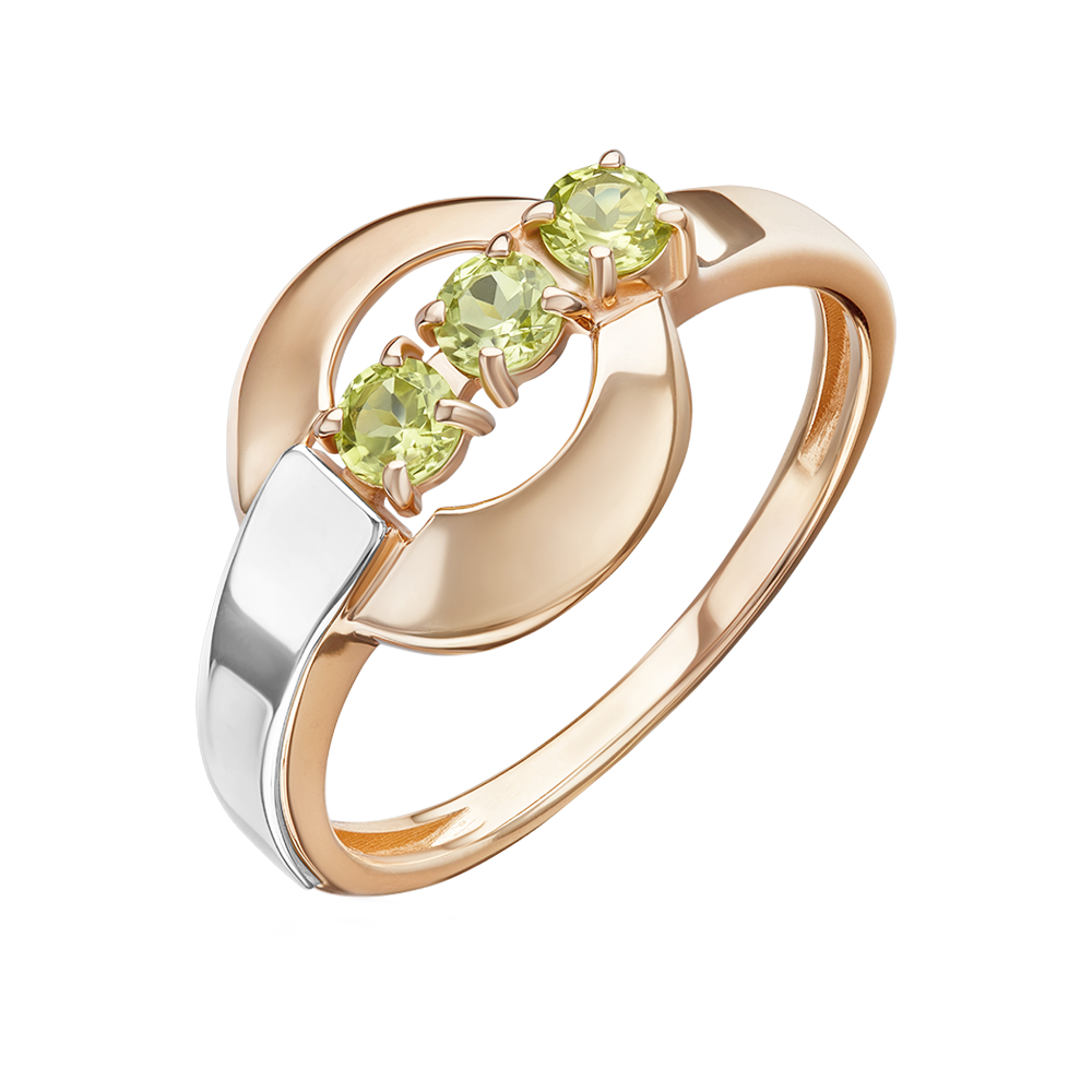 Zarter Damenring aus 585er Rotgold- / Weißgold 585, mit grünen Chrysolithen