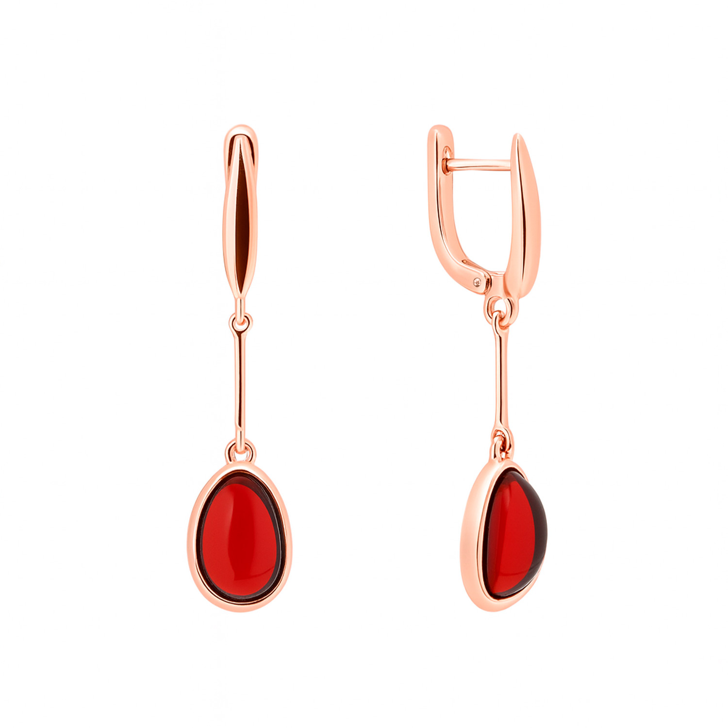 Rose gold-plated earrings in 925 silver with cherry and cognac amber stones