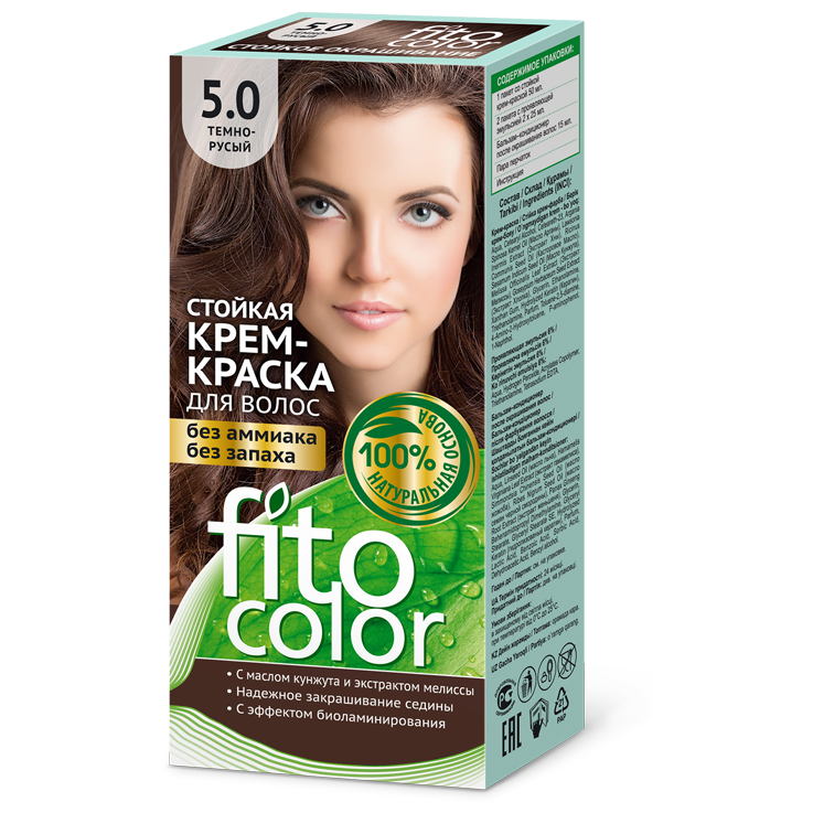 Fito cosmetics - "FitoColor" cream hair dye 5.0 medium blond, odorless, ammonia-free, 50 ml.