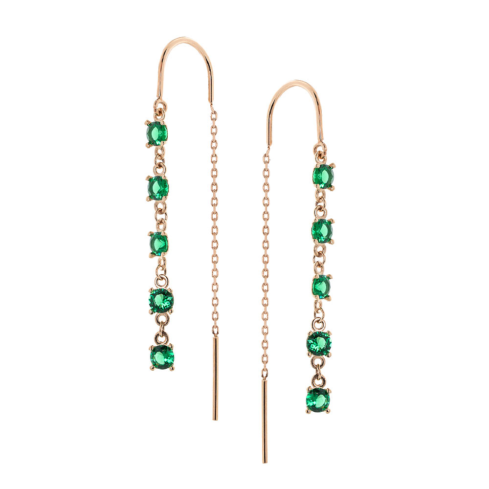 Flower stud earrings in 925 silver with colorless zirconia and green spinels