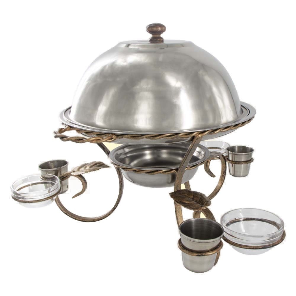 Sadzh-Set - Shashlik warmer with 3 sauce bowls and 3 stainless steel mugs, 28 cm