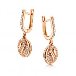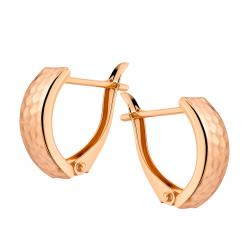Creoles in 925 silver in herringbone pattern with zirconia, rose gold-plated