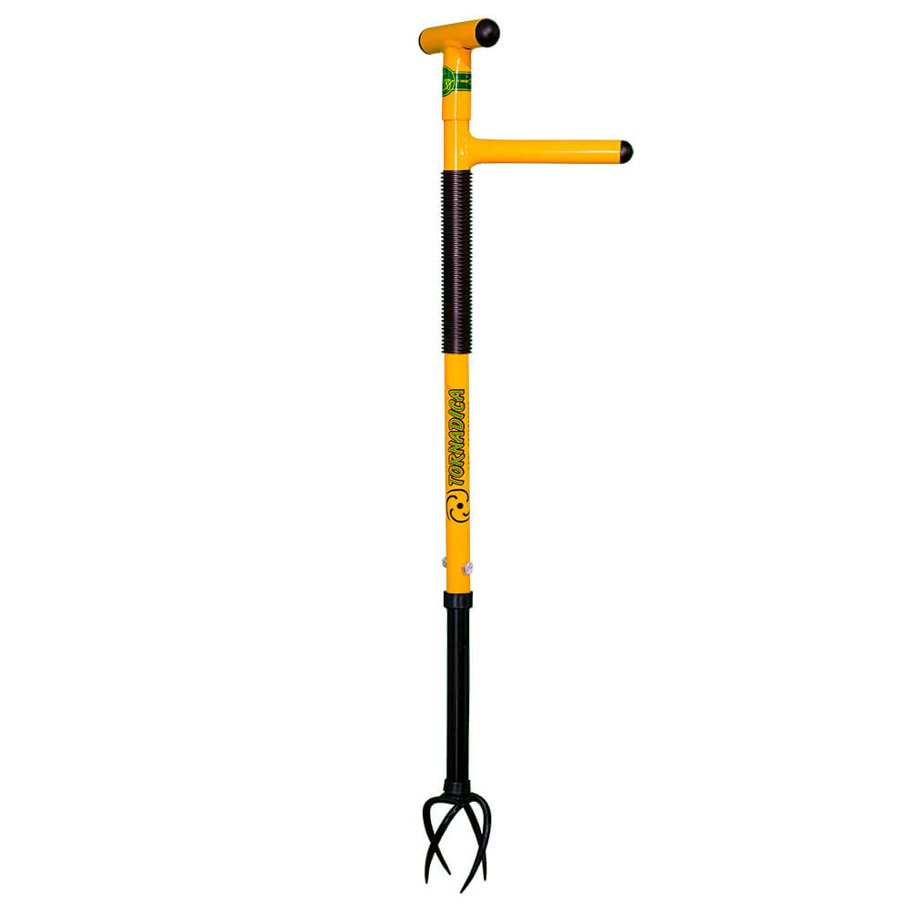 The effort required when turning the garden claw is very low thanks to the adjustable T-handle and you achieve the optimum leverage. Thus, when turning and pressing, the entire root system of the weeds is loosened.At the same time, the easy-to-use weed remover is easy on your back because you no longer have to bend over when removing garden weeds. Other garden tools for weeding are not needed thanks to the unique TORNADICA garden claw.