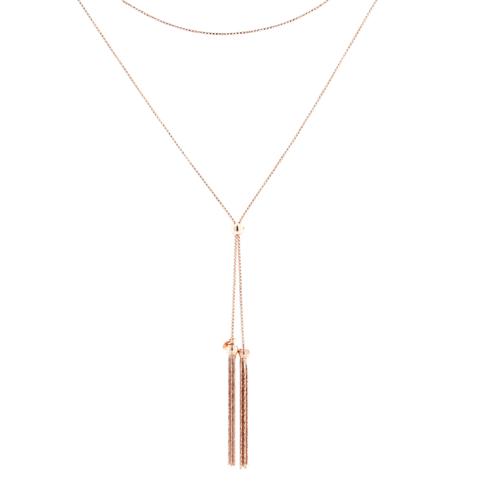 Y-necklace with tassels in 925 silver, rose gold-plated