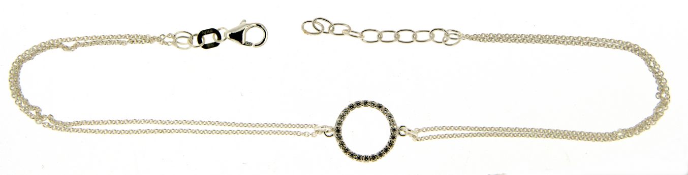 Anchor anklet with a zirconia circle in 925 silver, with lobster clasp
