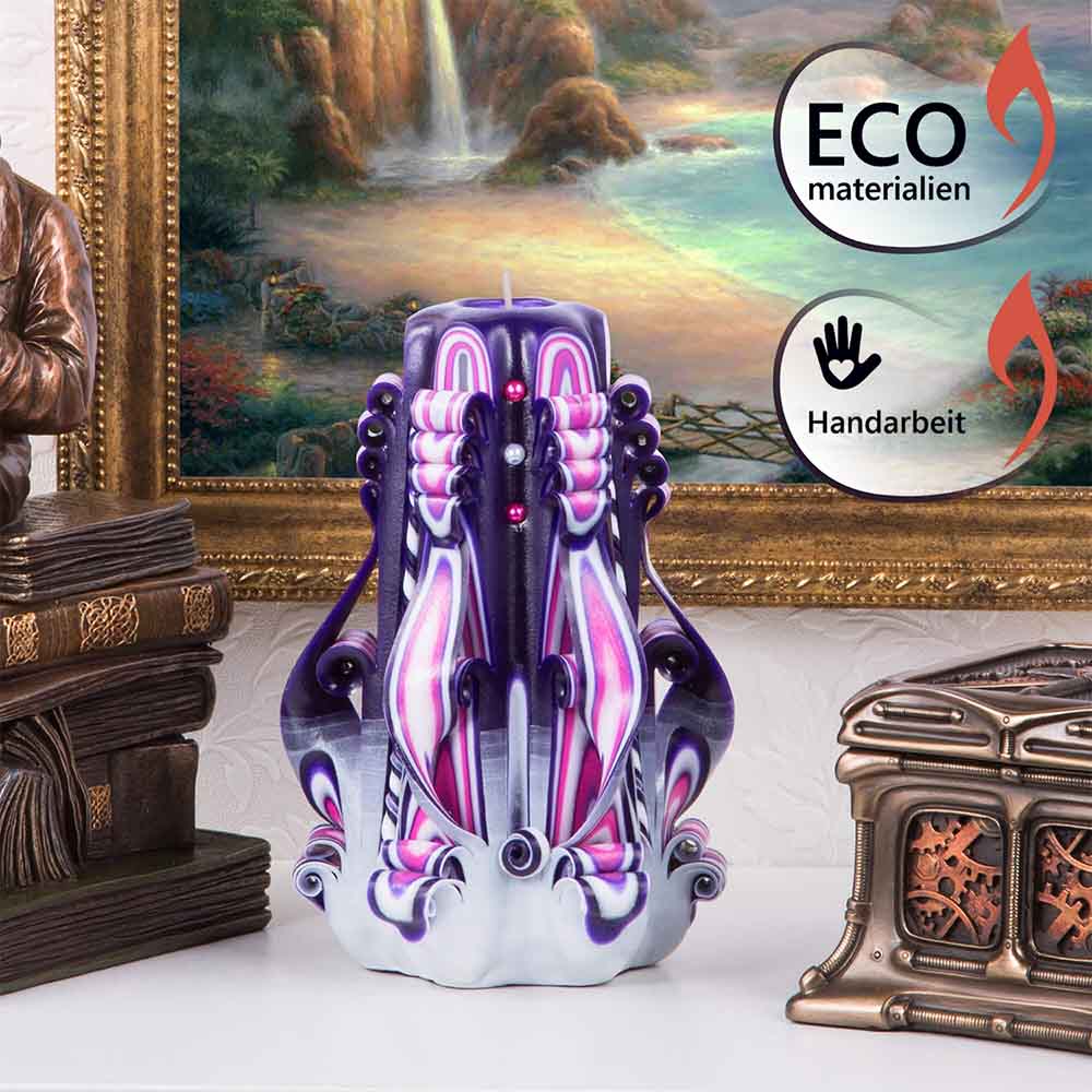 Decorative hand-carved kerosene gift candle is ideal as a festive decoration for the interior. The candles are made for long burning, they have a fire with a clear bright flame.This large candle in an original shape with a wick inside will help you create a romantic, cozy or soothing atmosphere.