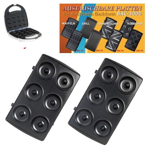 BAC-50-DONUTS interchangeable plates with non-stick coating for "Nut Baker BAC-3000" electric baking machine. With the help of these interchangeable plates, you can quickly transform your nut baker into a donut maker without any problems.Product information: