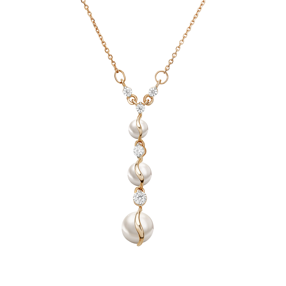 Elegant necklace in 585 rose gold with pearls and zirconia pendant