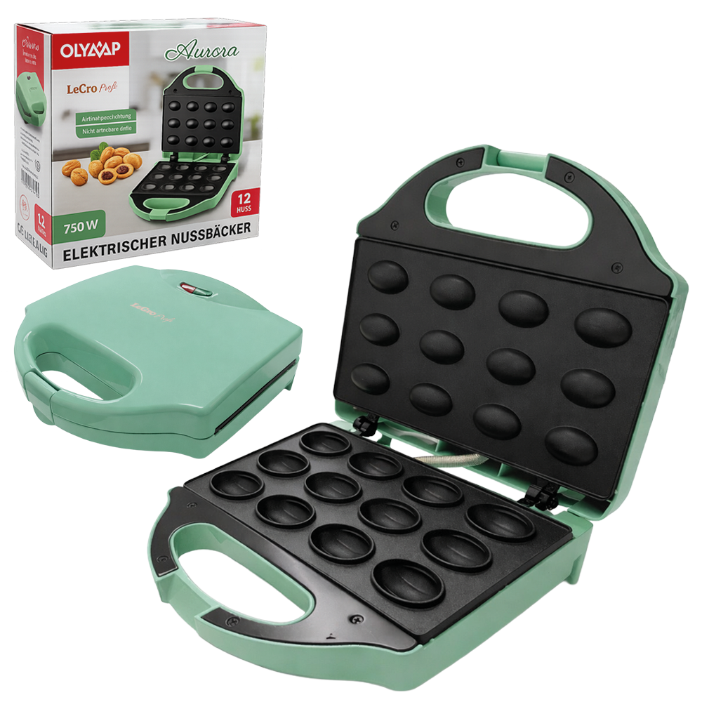 With the Aurora electric nut baker, the popular "Nüsschen" cookie shells are baked quickly, evenly and cleanly - perfect for homemade nut cookies with caramel, cream, condensed milk or nut filling. Thanks to its 750 W power, the appliance heats up quickly and bakes 12 biscuits per batch - ideal when guests are coming or if you want to prepare a whole tin at once.The non-stick coating ensures that the baked halves come off easily and cleaning is quick and easy. Practical for everyday use: the power indicator light shows when the appliance is in operation, while non-heating handles and a lock ensure safe handling when baking. The Oreshnitsa is stable on the worktop thanks to its non-slip feet - even when things need to move quickly. The heat-resistant plastic housing is robust and pleasantly light.