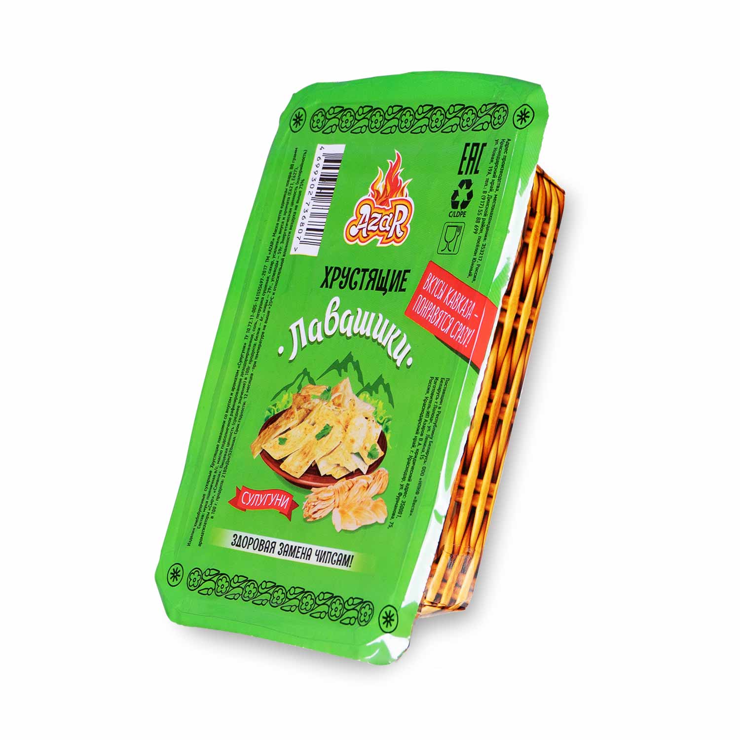 Azar Flatbread Chips Suluguni Flavor offer an incomparable taste experience, combining the authentic Suluguni cheese flavor with a crunchy texture. Made from high quality wheat flour and carefully selected ingredients, these potato chips are the perfect snack for any occasion. The taste of Suluguni, refined with a hint of dried parsley, makes for a delicious combination of tangy cheese flavor and aromatic freshness.Ingredients: Wheat flour, refined deodorized sunflower oil, salt, dried parsley, sugar, flavour and aroma enhancer E621,E627, aroma.