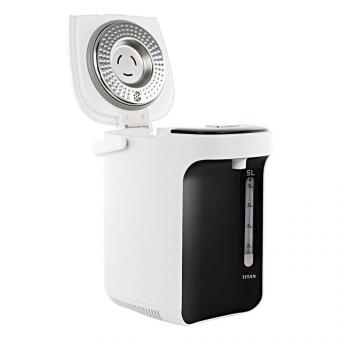 The TITAN Thermopot has a modern and attractive appearance. The workmanship and quality are of a high standard. The appliance can be rotated freely. It has an all-round swivel base. You can also tap water without electricity. This is particularly practical when you are out and about, for example if you want to have a picnic or host a garden party. The practical carrying handle makes it easy to transport. Water is always available for hot drinks. The stainless steel container has a generous capacity of 5 liters.