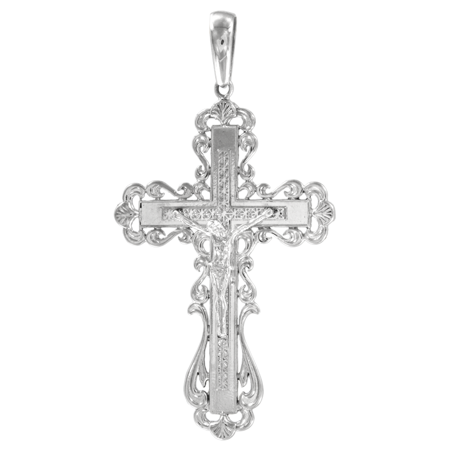 Extraordinarily filigree work by jewelers evokes admiration! The cross with openwork, carved patterns looks unusually attractive. The actual composition of the silver cross was created in a graceful and very beautiful Renaissance style. The soul rests at the sight of such jewelry. Incredibly exquisite jewelry. Jewelry with soul. Jewelry for soul harmony.Silver jewelry resembles the human soul - it has a way of shining when polished and darkening when neglected. As a symbol of spirituality and faith, the cross will give its owner strength and hope in difficult situations.