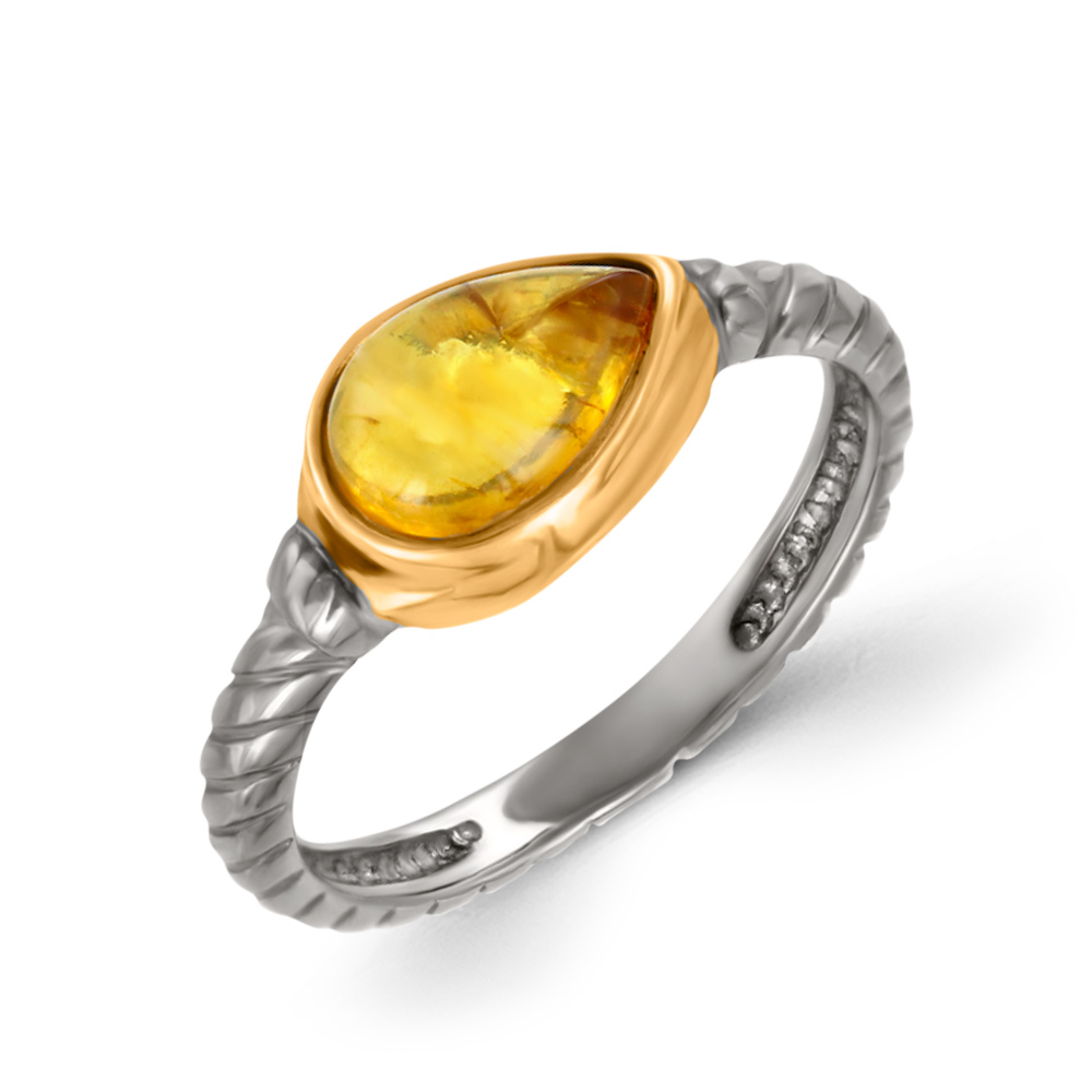 Beautiful ladies' ring in sterling silver, gold-plated and rhodium-plated, with amber - stone width ≈ 9 mm