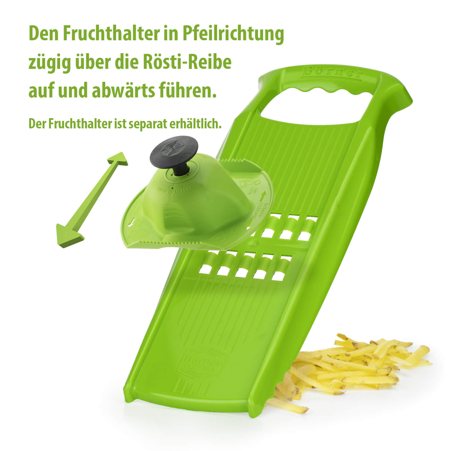 With the Rösti grater you can easily and quickly grate potatoes for potato pancakes.(Fruit pusher sold separately).