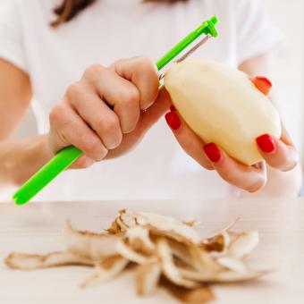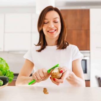 The economy peeler from Börner has a double blade that makes peeling even faster. It peels slices extra thin, thus preventing wastage of fruits and vegetables.With the help of the practical eyelet, you can easily remove brown spots from, for example, potatoes. With the cutter on the side of the apple peeler, it is possible to garnish the fruit or vegetables in style.