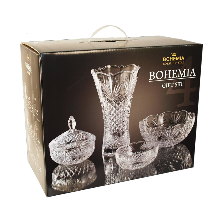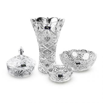 BOHEMIA set crystal tableware MIRANDA 4 pieces - vase, bowl, ashtray and candy dish.