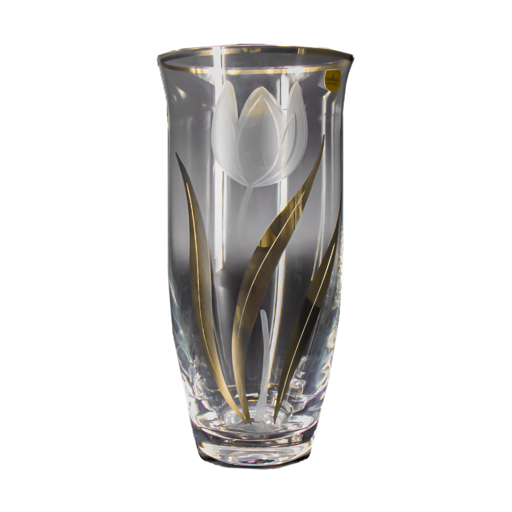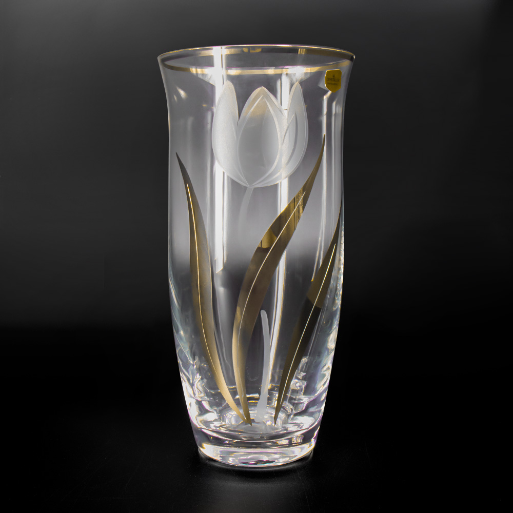 Bohemia Crystal vase tulip with gold, 255 mm