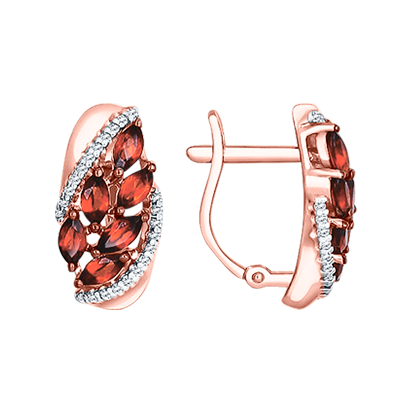 Bright 585 red gold earrings encrusted with garnets and fianites