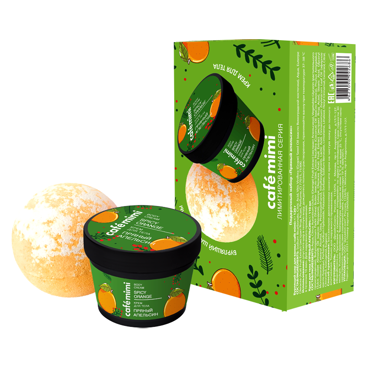 café Mimi SPICY ORANGE gift set, body cream + effervescent bath ball, 110 ml + 120 g
