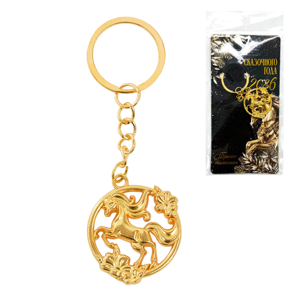 Christmas key ring "Golden horse" - lucky charm for the festive season, 3x8 cm