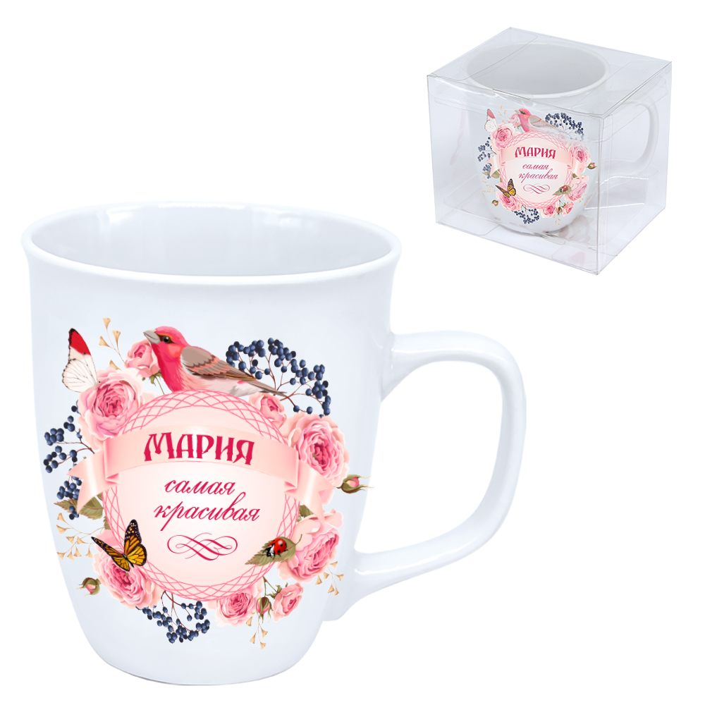 The mug is made of environmentally friendly, high-quality porcelain with a fine sheen. The mug has an attractive themed design in the form of a lettering in Russian "Mary is the most beautiful".This stylish mug is ideal for everyday use - whether in the office or at home.