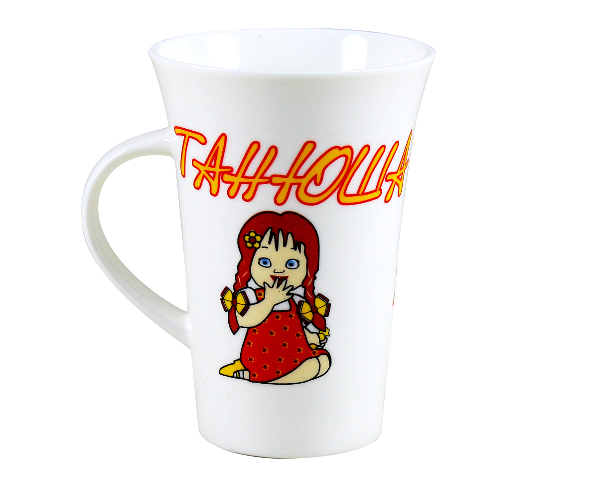 The mug is made of environmentally friendly, high quality porcelain with fine gloss. The mug has an attractive thematic design in the form of a lettering in Russian "Tanjusha".This stylish mug is ideal for everyday use - whether in the office or at home.