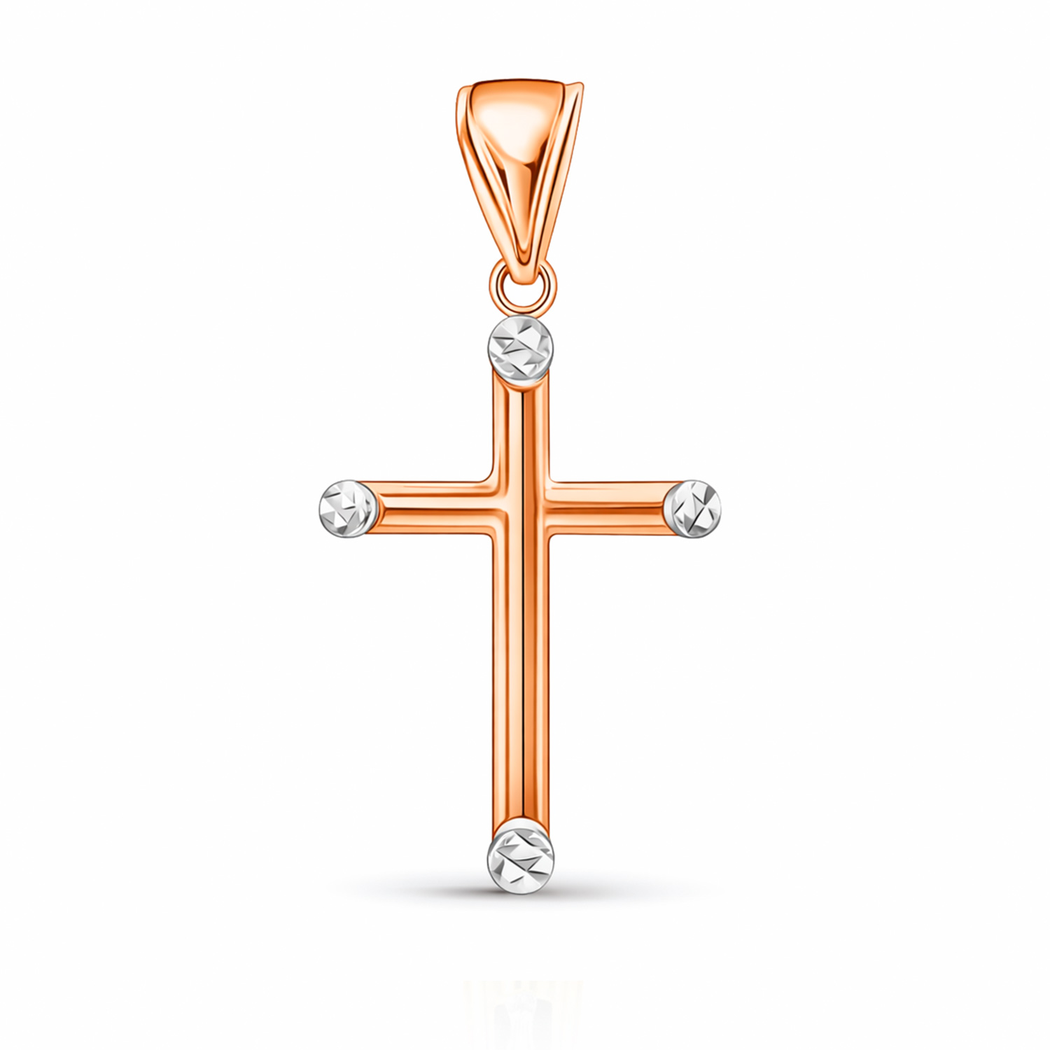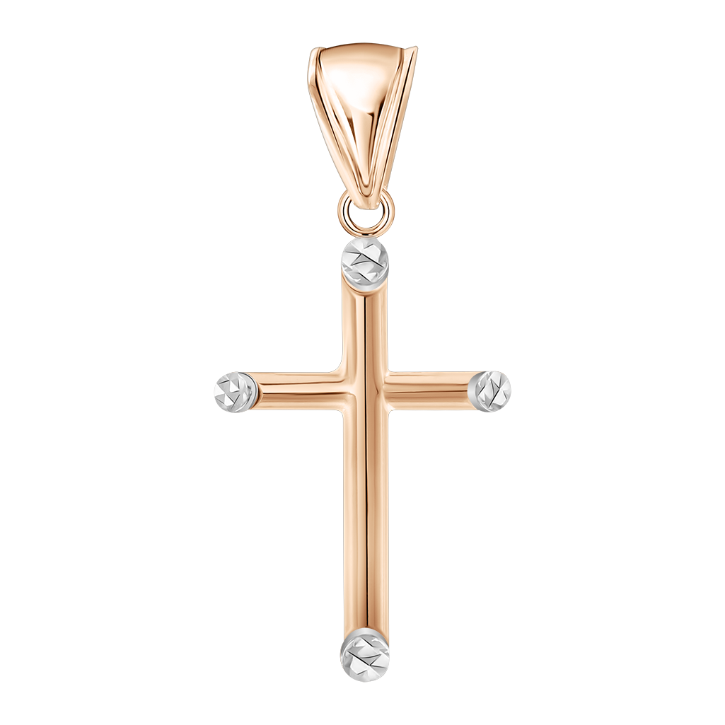 Elegant cross made of 585 rose and white gold with a height of approx. 29 mm. The delicate white gold ends add subtle accents and give the classic design a modern touch. A timeless piece of jewelry that harmoniously combines symbolism, style and elegance.Ideal both as a personal accessory and as a valuable gift with special meaning.