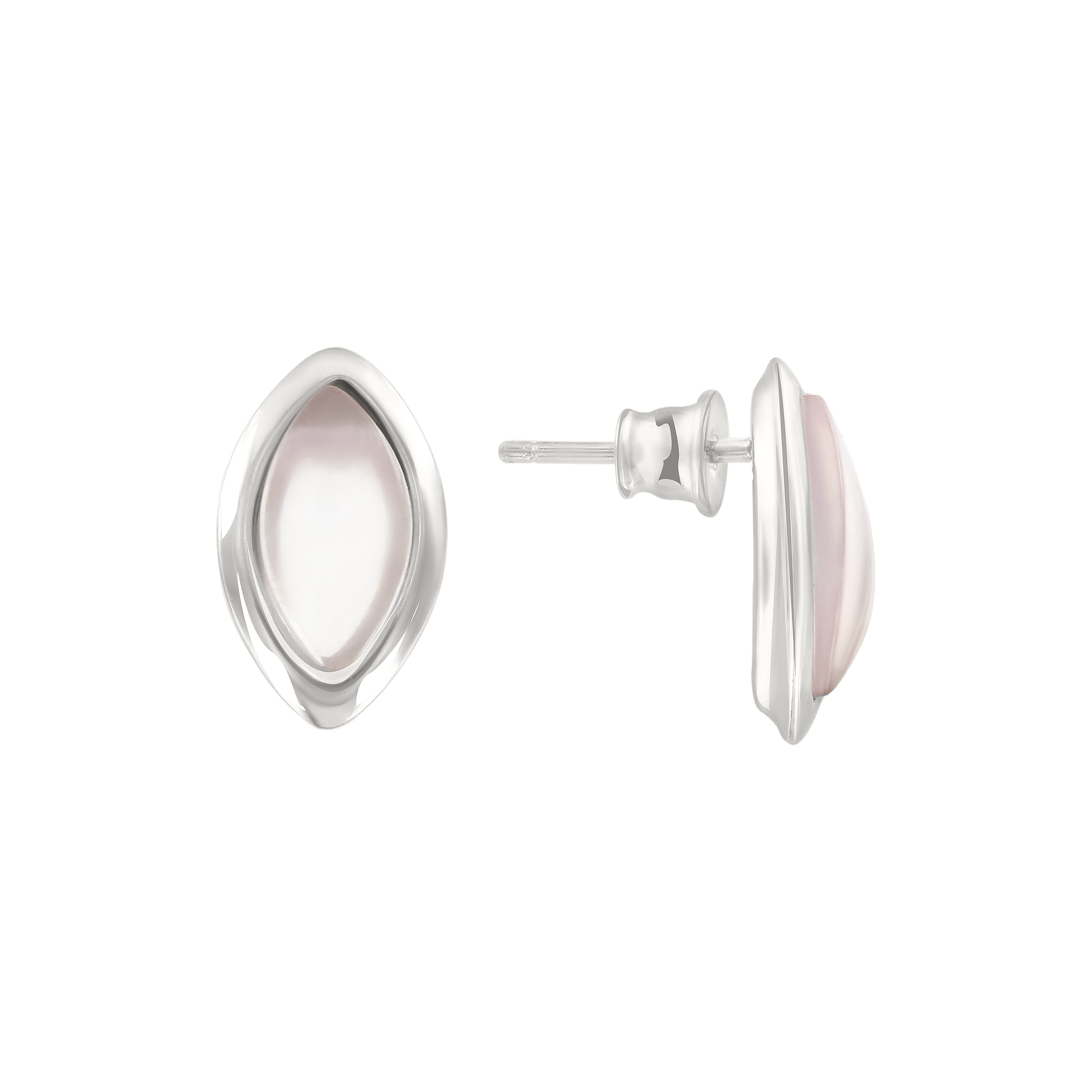 Delicate stud earrings, made of silver, with rose quartz, height ≈ 16 mm