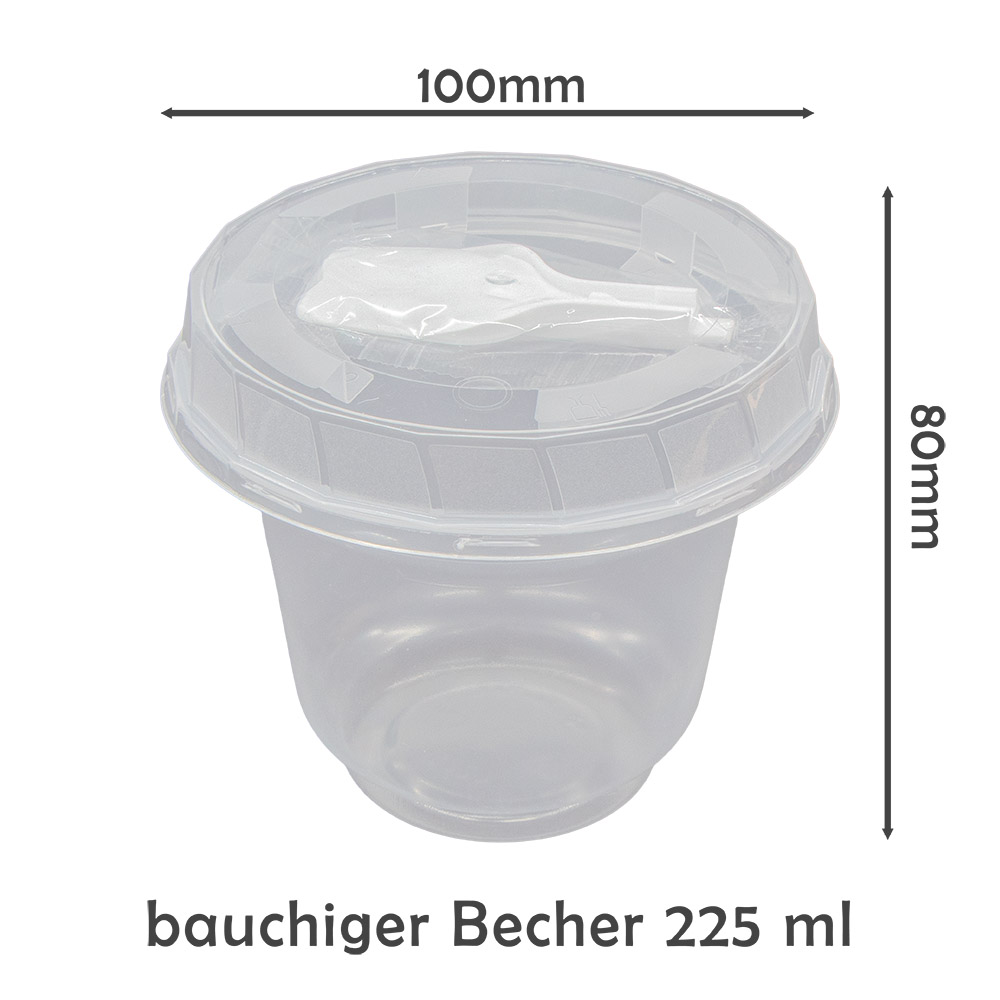 Disposable deli cup set cups with lid Ø95mm and spoon, 225ml, 50pcs.