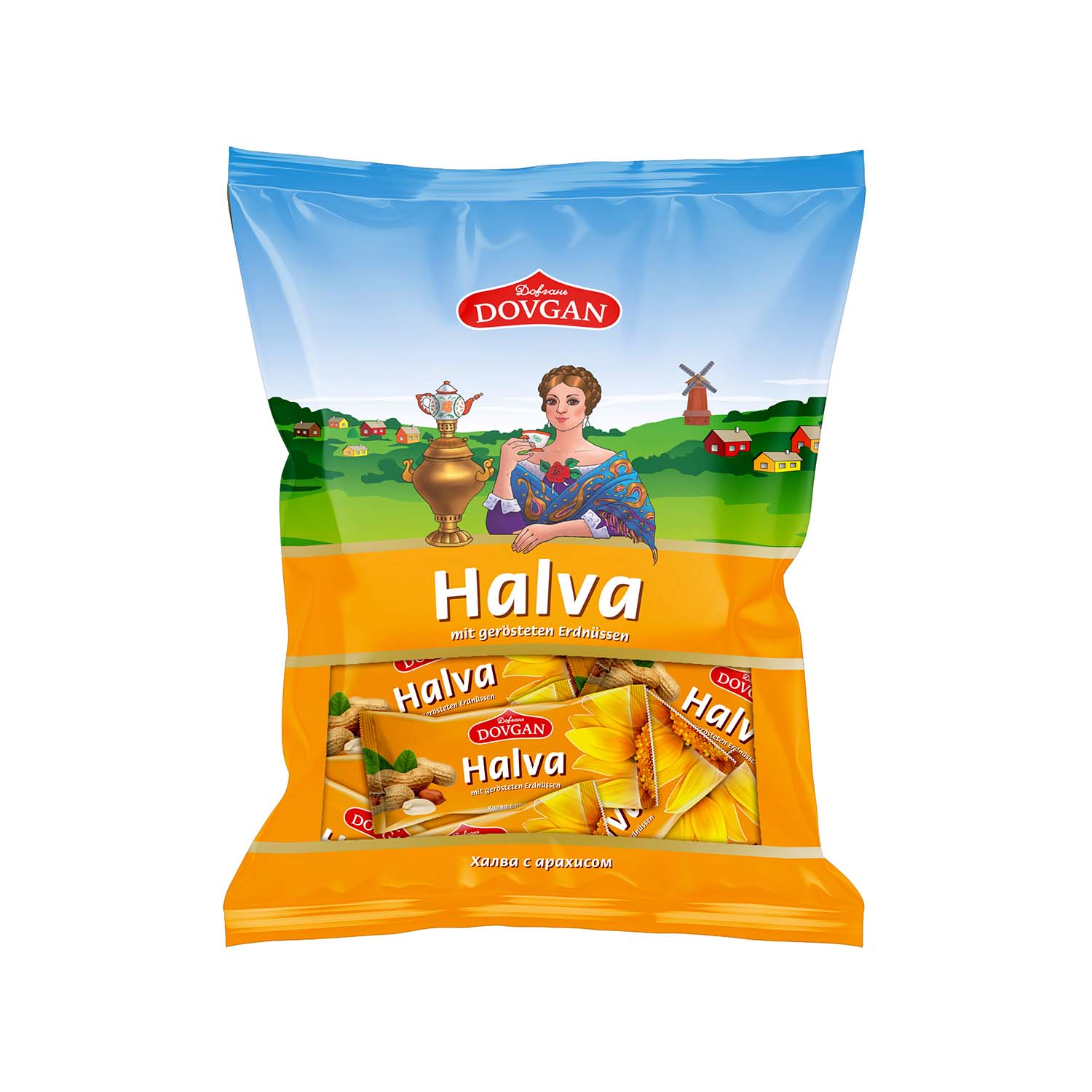 DOVGAN Halva with roasted peanuts, 250 g - Soft confectionery with roasted sunflower seeds and peanuts.