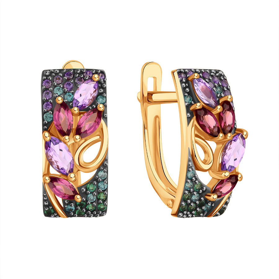 Stunning earrings in 585 rose gold, set with amethysts, rhodolites and multicolored zirconia