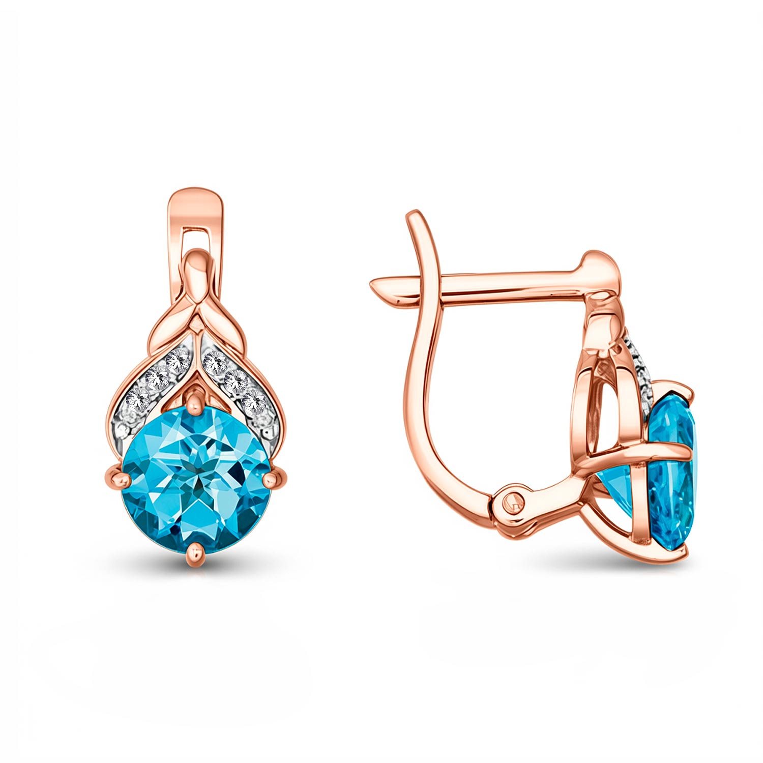 Charming earrings in 585 rose gold, with blue topazes ≈ 6 mm and zirconia