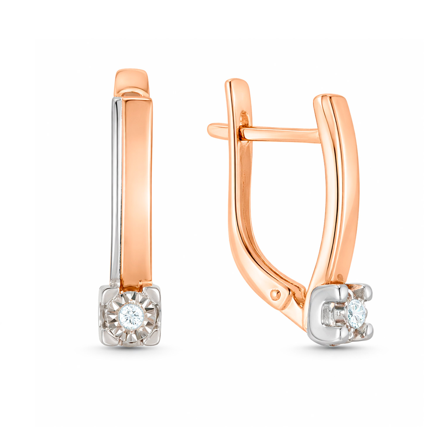 These elegant earrings in 585 rose gold combine classic beauty and timeless sophistication.Each earring is set with a sparkling brilliant-cut diamond (GSI, 0.027 ct in total), which is accentuated by its fine brilliance and perfect setting. The combination of warm rose gold and cool white gold creates a modern, two-tone effect and underlines the luxurious radiance of the design.