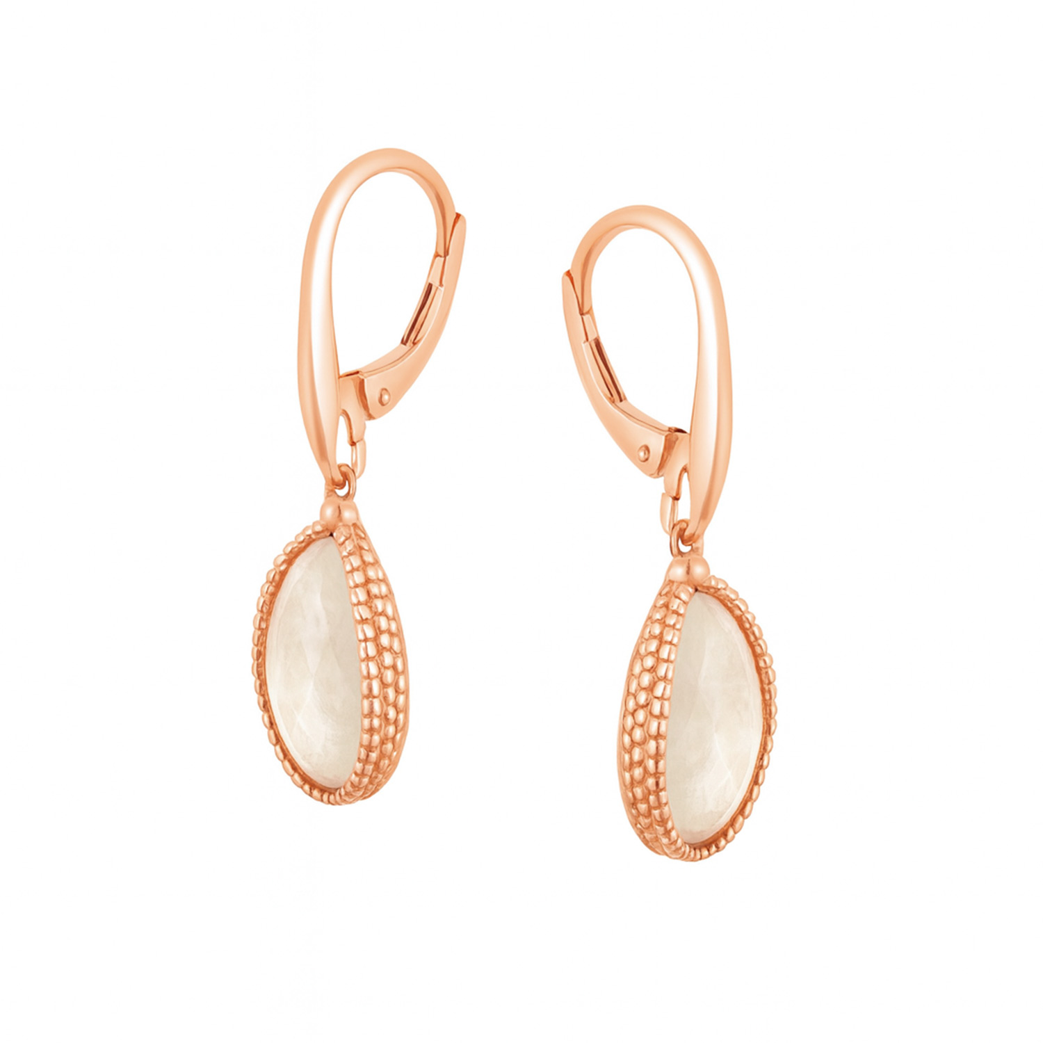 Earrings in 925 silver, rose gold-plated with rose quartz