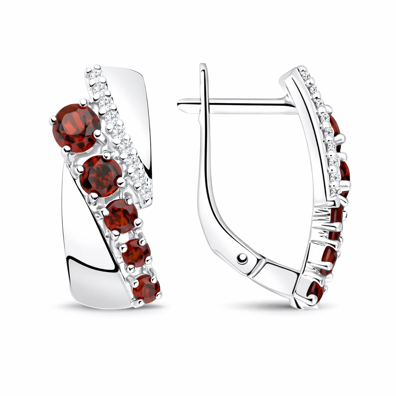 Earrings in 925 silver, with garnets and zirconia, height approx. 17 mm