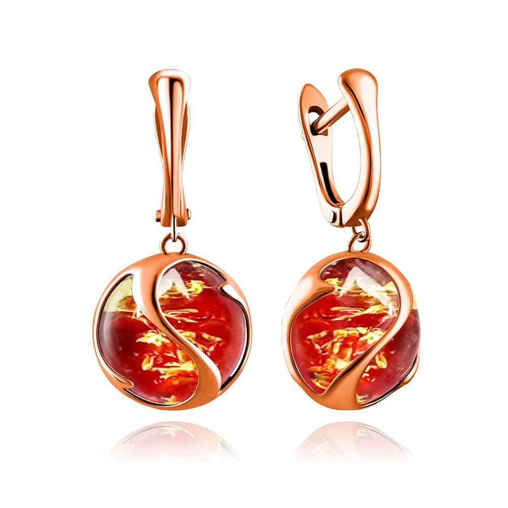 Earrings in gold-plated 925 silver with spherical red amber stones - timeless elegance in perfect form