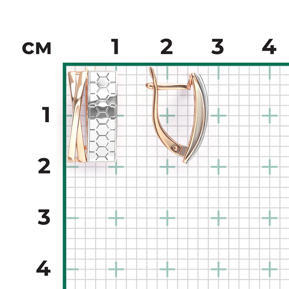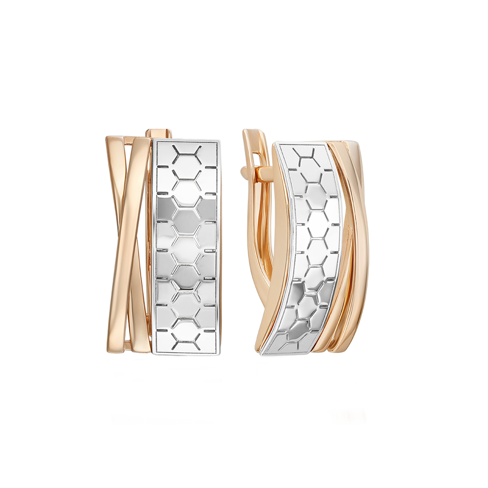 Elegant earrings in 585 red/white gold with geometric pattern, height approx. 20 mm