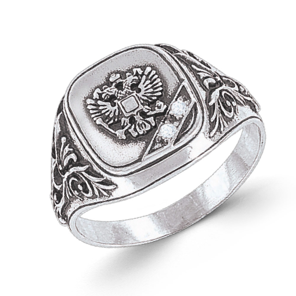 Excellent men's ring with the coat of arms of Russia made of sterling silver, with inlays of 2 zirconia