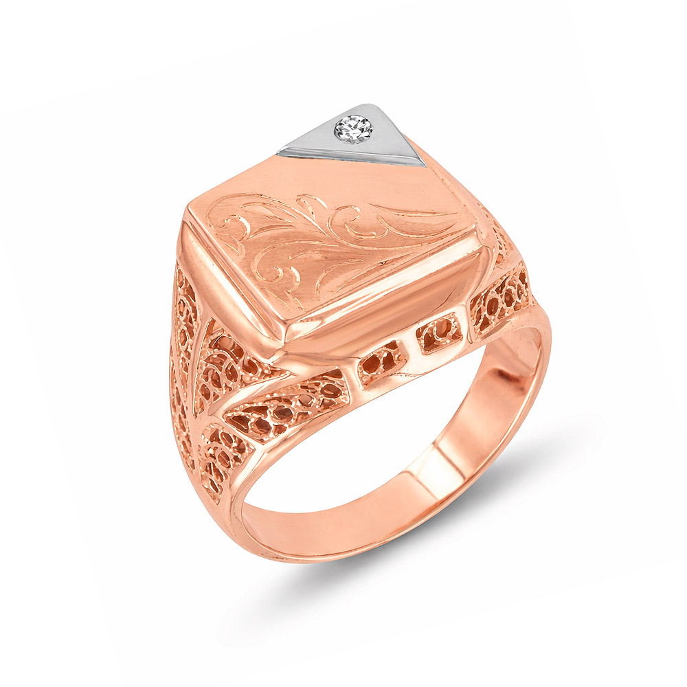 Exquisite men's ring, rose gold 585, with cubic zirconia, weight approx. 9.0 g